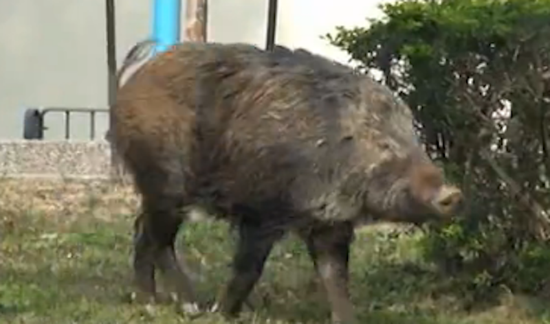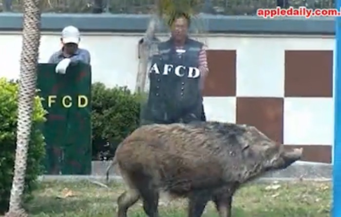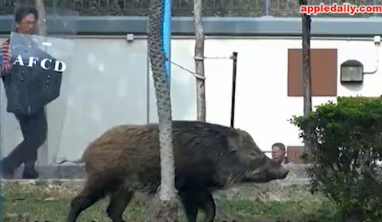Yesterday morning an 80-kilogramme, 1.5-metre-long wild boar wandered into a park in Sha Tin Tau village in Tai Wai.