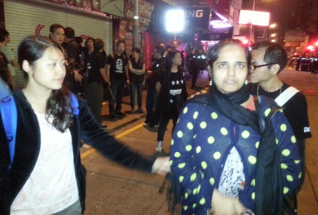 Several people claim that a police officer told a South Asian woman to “go back to India” in Mong Kok as scuffles erupted over protesters trying to reoccupy now-cleared streets.