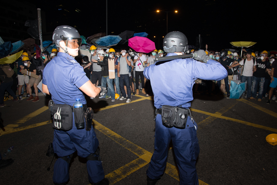 Tactical police clearing protesters from Lung Wo Road on Dec. 1, 2015 in Admiralty. (Photo: Laurel Chor/Coconuts Media)