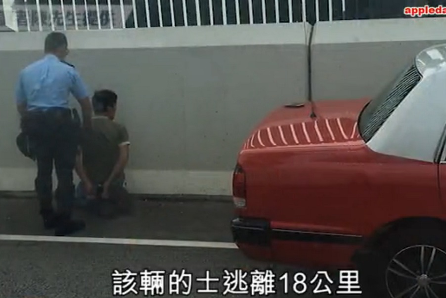 After disembarking, the passengers revealed that they were in fact officers of the law. One of the policemen unloaded their suitcases while the other went to arrest the driver. The cabbie, who we guess is a “go big or go home” kind of guy, then allegedly closed the door on the officer’s hand and sped away, Apple Daily reports.