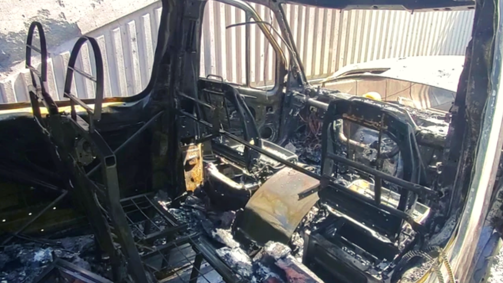 The fire was deemed not suspicious in an initial investigation. Only one person, the driver, was in the van, and no casualties were reported.
