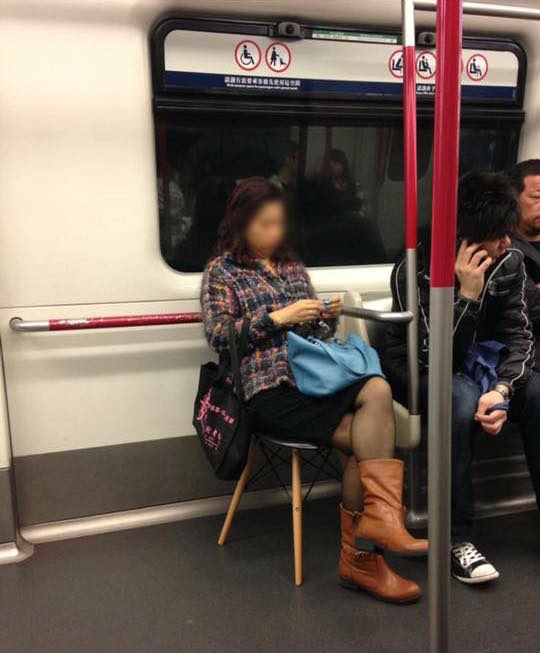 Po Yan, a reader of local magazine 100most, sent in a photo of what appears to be a well-dressed woman sitting on a desk swivel chair as she chatted with her friend sitting across from her – in an actual seat… next to an empty seat… on a bus.