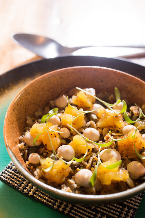 Cereal and Yoghurt, which turned out to be an unlikely but refreshing combination of cold foie gras parfait, savoury granola, almond yoghurt and peppered pineapple.
