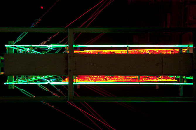 The man with the undeniably cool name began shooting the signs from directly below at night, contrasting the condensed blocks of glowing colour against the unyielding night sky.