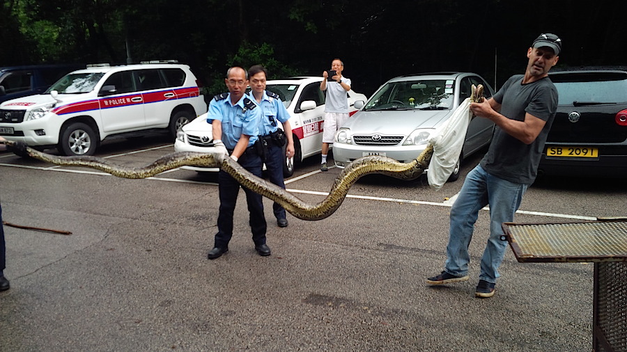 In case you didn’t realise exactly HOW MASSIVE the Burmese python that was found in Sai Kung this weekend was/is, here’s ANOTHER INSANE PHOTO!.