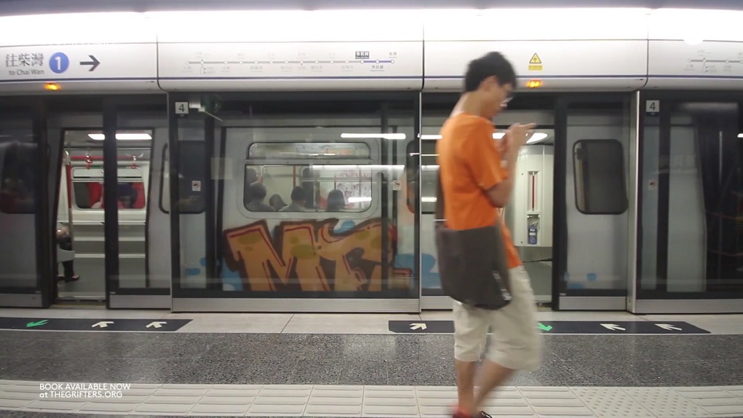 In a video which was released yesterday, an American couple known as “Utah and Ether” are seen breaking in to an MTR depot while it’s dark out, painting at least three designs on the trains, and watching citizens routinely ignore them in favour of their phones. Case in point: