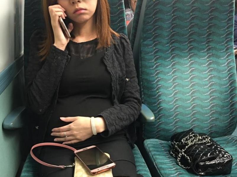 Pictures of the woman and her story of how she got rid of people who was dying to sit next to her on the train were uploaded on Facebook by YuenYee Li. Li claimed that the pregnant woman in the pictures had put her handbag on the seat next to her and refused to let any other passenger to get their butt near, saying “it’s taken.”
