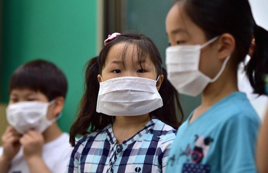 South Korean schoolchildren wear face masks during a special class about MERS at an elementary school in Seoul on June 3, 2015. (Photo: AFP)