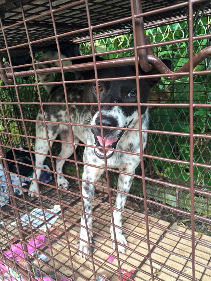 After they heard barking at 9pm on Sunday night, a member of the group’s “A Team” of dog catchers finally managed to catch collar Aladdin!