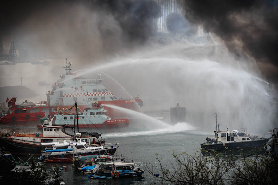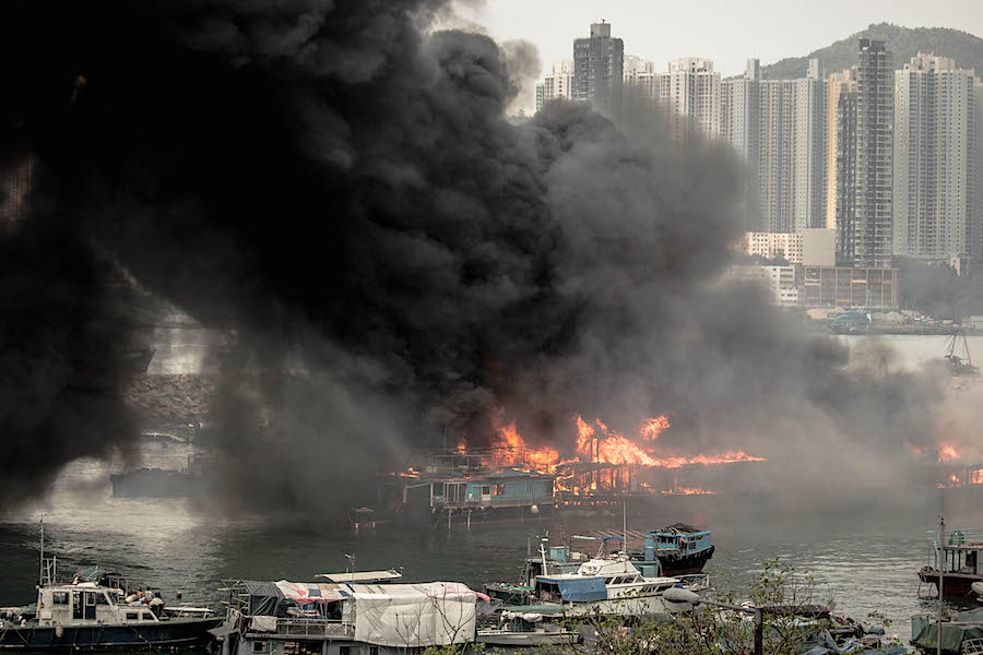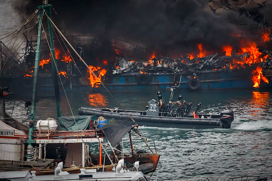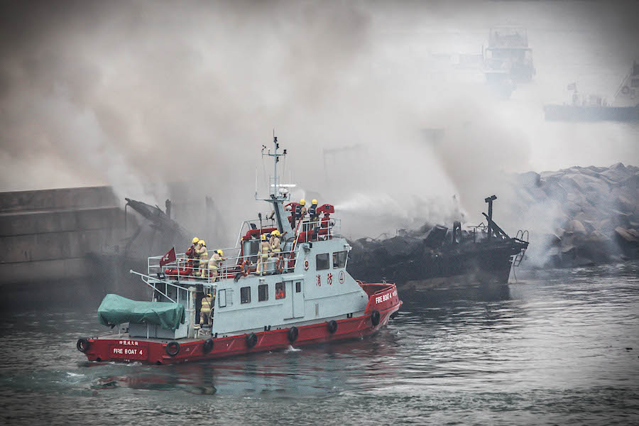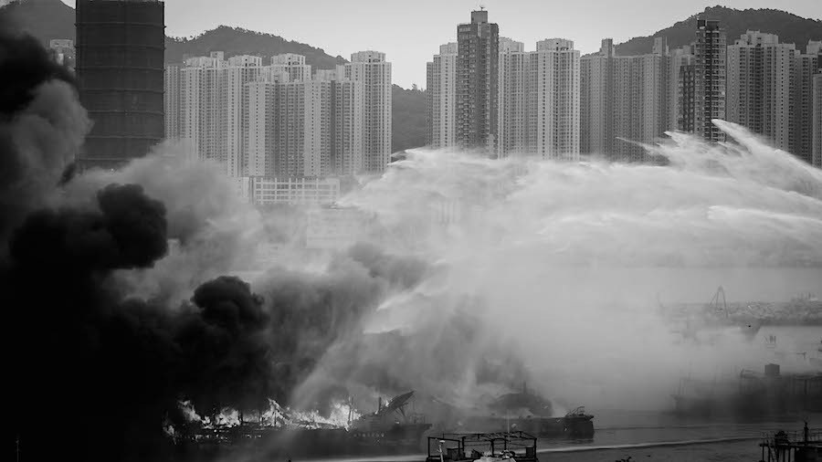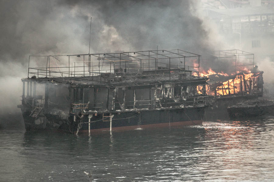 Thanks to committed Coconaut Richard Wilkinson who sent us these unbelievable photos and video footage of the huge blaze at Hong Kong’s Shau Kei Wan typhoon shelter yesterday.