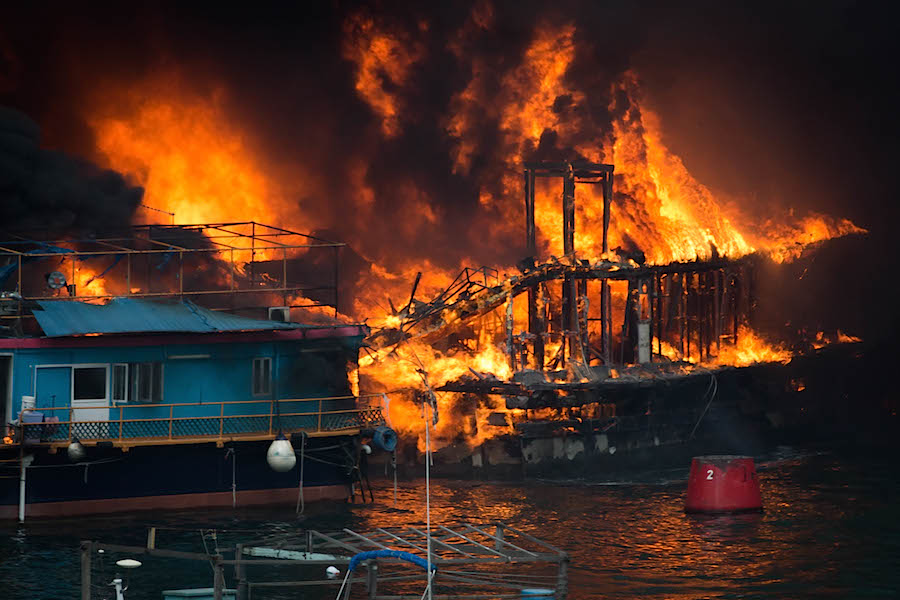 Thanks to committed Coconaut Richard Wilkinson who sent us these unbelievable photos and video footage of the huge blaze at Hong Kong’s Shau Kei Wan typhoon shelter yesterday.