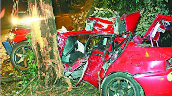 Two were killed when a Mitsubishi Lancer Evolution sports car lost control and crashed into a tree yesterday along Bride’s Pool Road, Tai Po – causing the lives of 28-year-old Joanne Lai and 28-year-old Lo Kin-tang. Read the original post here.