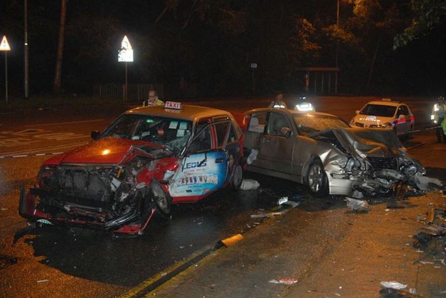 The taxi lost control and swerved into the opposite lane, hitting a Mercedes Benz, reports Bastille Post.