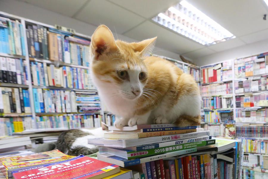 According to the book shop owner, Caroline Chan – who keeps around 20 cats in the store – Fok Jai has been skittish since his return and does not want to be picked up.