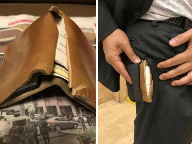 Pictures of a man’s pocket sliced wide open together with his leather wallet inside exposing the bank notes it’s carrying went viral after they were shared to a Facebook group and recaptured by Ton Lutonna, who uploaded the photos on to anther Facebook page of North District yesterday, suspecting the incident had happened in Sheung Shui. The original post which reminds people to be aware of razor thefts is no longer available on the social media website for unknown reason.