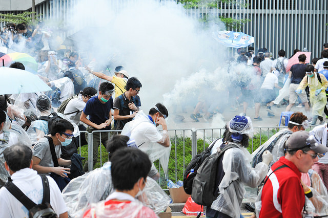 The tear gas volleys incensed the predominantly youthful crowds demonstrating against Beijing’s refusal to grant full democracy in 2017, as a tense week of largely contained student-led demonstrations exploded into mass angry street protests.