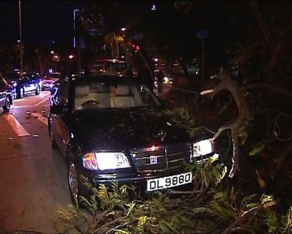Earlier this evening, a massive tree collapsed, and smashed into two private cars driving through Nam Fung Rd in Wong Chuk Hang.