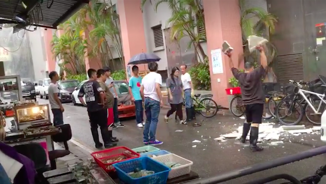 According to Apple Daily, a group of men were trying to park a vehicle, but were prevented from doing so because a woman and her two sons, who insisted the area was not for parking, stood in the way.