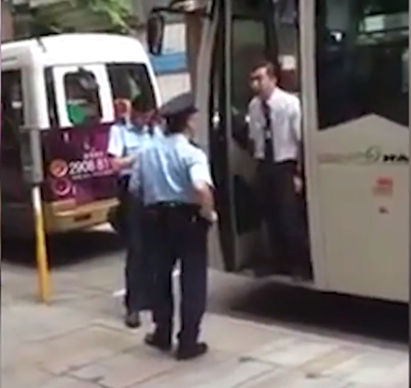 According to the Sky Post the incident happened in Tsim Sha Tsui when a policeman and his partner were giving a bus driver a ticket for illegally parking on the street. As the bus driver tried to talk his way out of a ticket he pointed his finger here and there and ticked the policeman’s partner off so bad that at one point he grabbed the bus driver’s hand and told him to stop or he would arrest him. The policeman even called for backup and ten policemen arrived but no one was arrested.