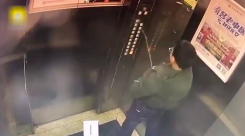 In the immortal words of Jurassic Park‘s Ian Malcolm (Jeff Goldblum) — “when you gotta go, you gotta go” — and this kid went, all OVER the buttons, getting enough arch on the stream to drench numbers for the upper floors.