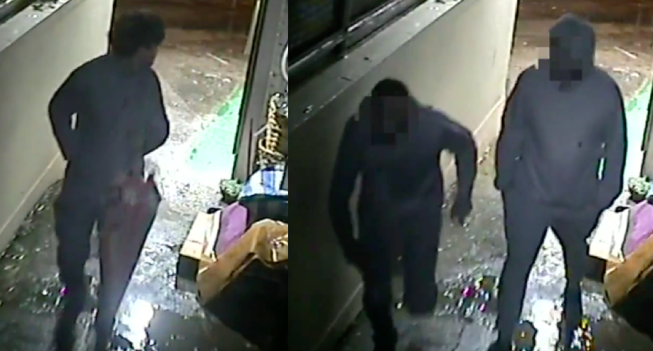 A few seconds later, two men with can be seen walking towards the alleyway before breaking into a run.