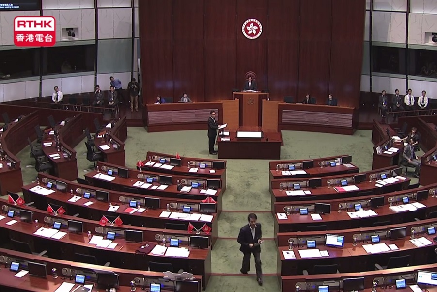 The walkout was in protest of Leung and Yau’s first attempt at their LegCo oaths, which saw the two pro-self-determination politicians display banners reading “Hong Kong is not China” and pledging allegiance to the “Hong Kong nation” last Wednesday.