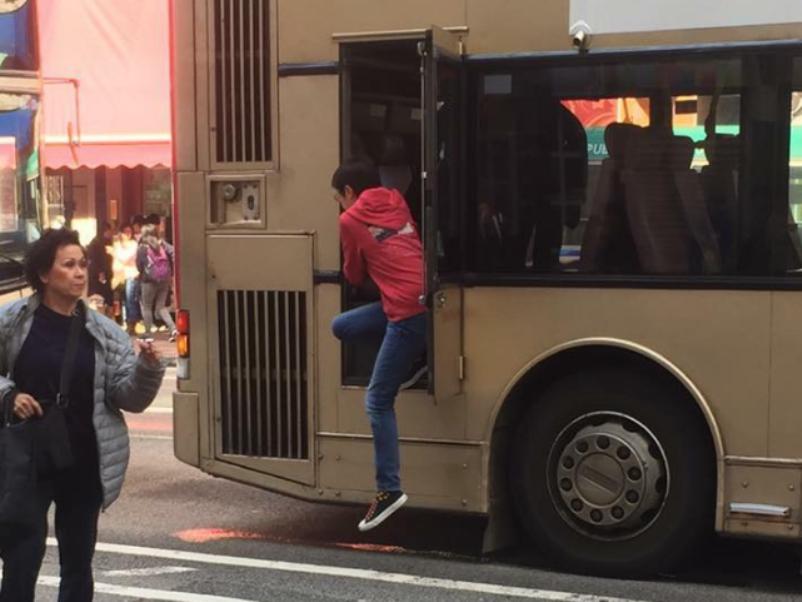 A picture showing the man, who was not identified, climbing out of a KMB bus was posted on a Facebook page for bus discussions (yes, that’s a thing) last week. In the caption, the uploader wrote, “From what I heard, there was a huge traffic jam and some guy selfishly decided to get out using the emergency door.”