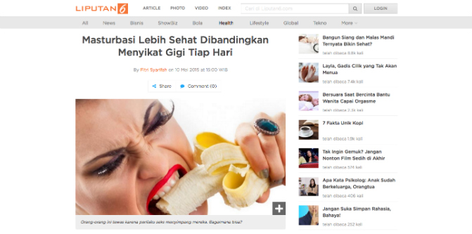 The most popular Indonesian news websites know quite well that sex sells, and sometimes we can’t help but do a double take at some of the ridiculous headlines on sexual topics out there. They wouldn’t be so funny if they weren’t so absurdly out of place and hypocritical in the context of Indonesia’s traditional conservative values that these media outlets pretend to uphold.
