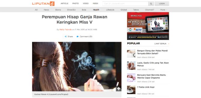 2. “Women who smoke weed are at risk of having dry Miss V” – Liputan 6, May 11