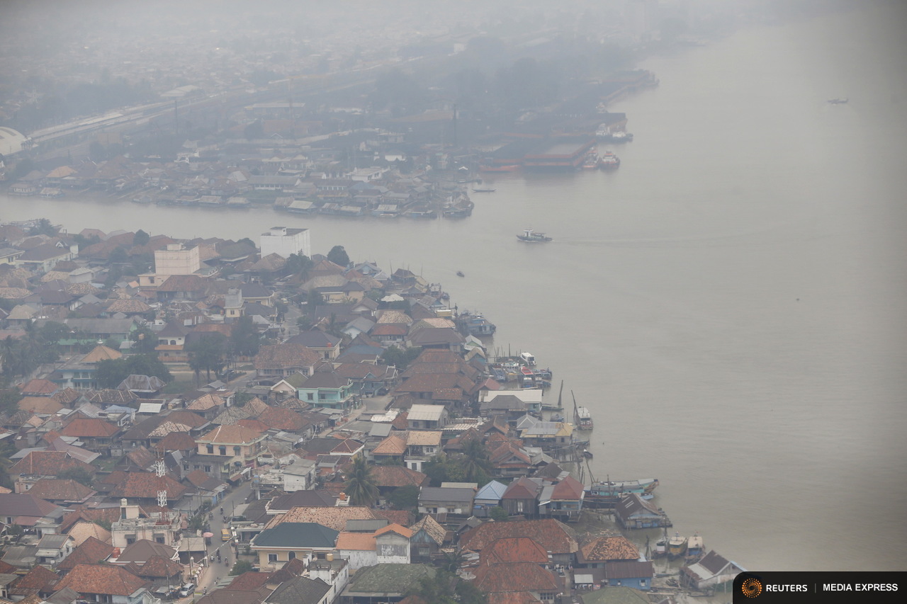 Housing complex near Musi River is enveloped in the haze blankets. Photo: REUTERS/Beawiharta