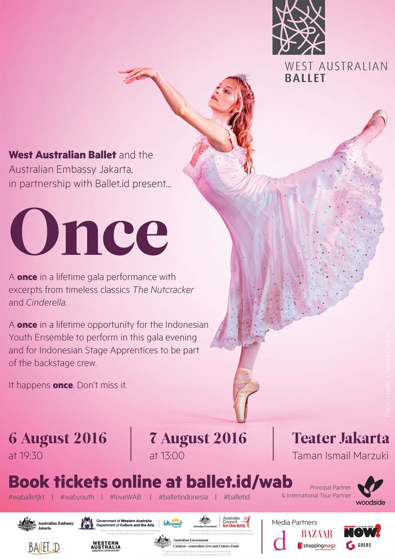 There aren’t a ton of opportunities for fans of ballet to see performances in Jakarta, but this weekend will see the renowned Western Australian Ballet company come to the capital for the first time in 20 years as part of their latest international tour. Their show, “Once”, features nine works ranging in style from classical to modern to neo-classical ballet in the first act, and an excerpt from “Cinderella” in the second. The renowned dance company will be taking the stage at Taman Ismail Marzuki’s Teater Jakarta on Saturday at 7:30pm and Sunday at 1pm. Tickets start at Rp 360,000. For more info go to http://www.ballet.id/wab/