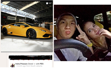 Indra apparently posted photos of Pevita and her new yellow Lambo on his inaccessible private Instagram account, but this screenshot has gone viral and serves as proof that the engagement present rumors are true.