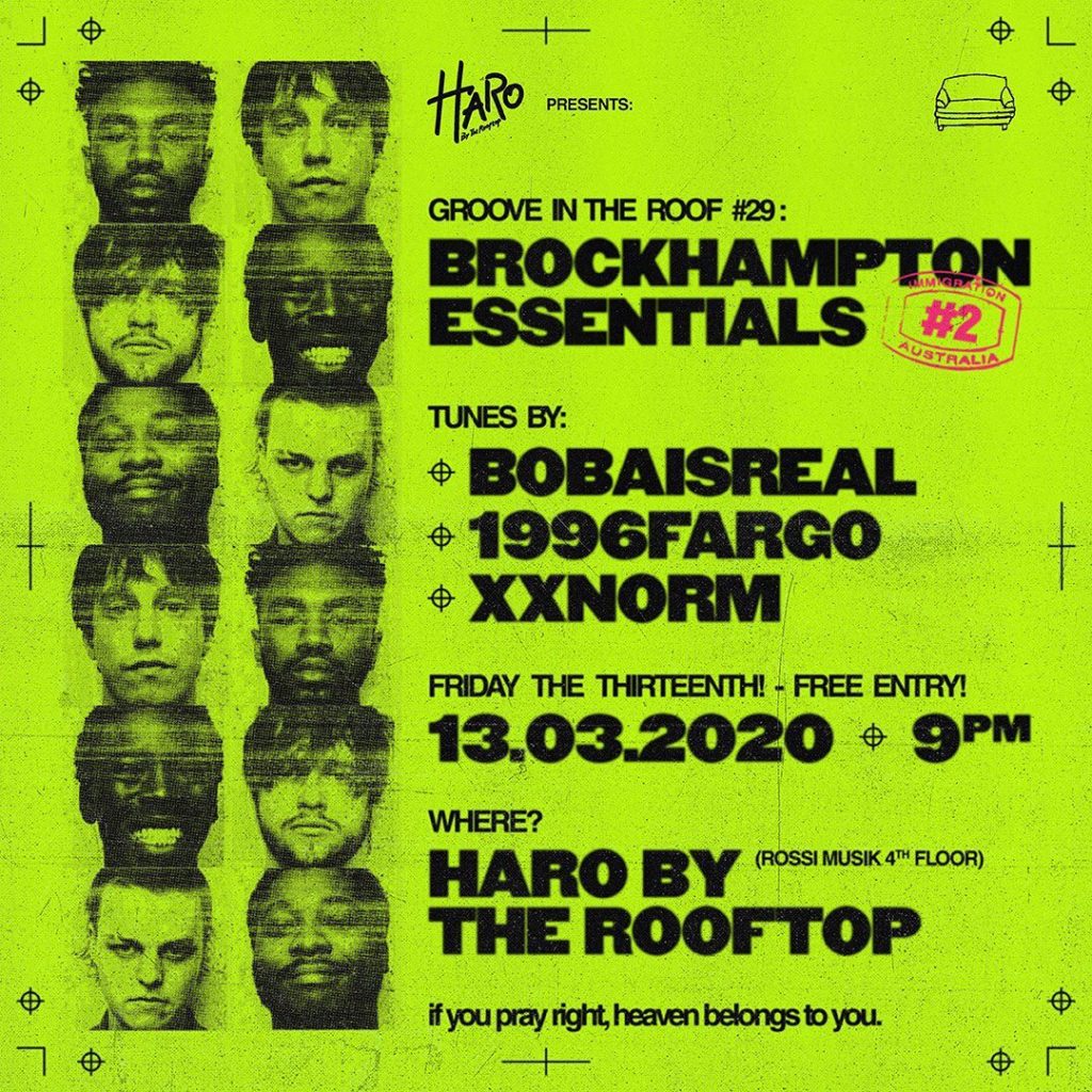Well, you don’t have to be a Brockhampton nerd if you want to boogie at the special party dedicated to playing songs by the 13-member American boyband/rap collective. Behind the deck will be 1996Fargo, Bobaisreal, and xxnorm.