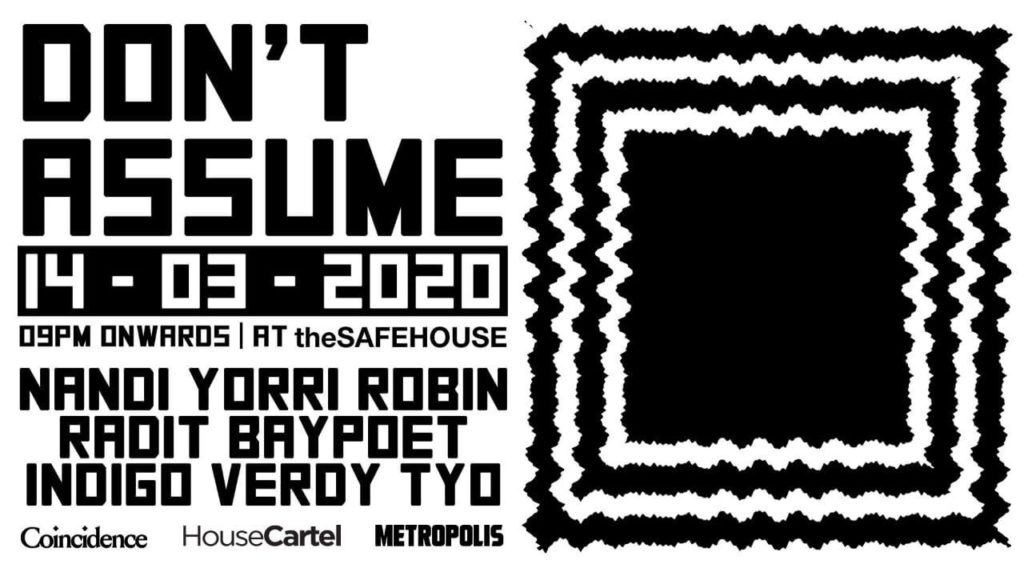 Don’t assume, just come and enjoy the ride as House Cartel, Metropolis and Coincidence are joining forces for one night at The SAFEHOUSE this Saturday.