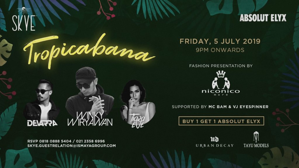 Bring out your inner summer vibes and let’s get tropical at Tropicana: Summer in Havana featuring DJ Winky Wiryawan, Tiara Eve, and Devarra. Supported by MC Bam, VJ Eyespinner, and there will also be a fashion presentation by Nico Nico Swimwear.