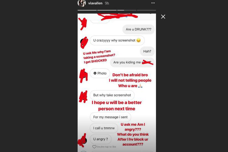An hour later, Via posted a screenshot of their chat after he allegedly confronted her via DM about her first post.