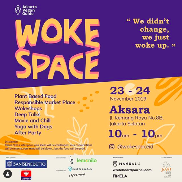 Still on the subject of wokeness, Kemang will play host to Woke Space this weekend, a festival for all the best plant-based products the city has to offer, as well as talks and workshops from some of the most inspiring people in the industry. Did we mention that there will be a yoga class with dogs? Because there totally will be.