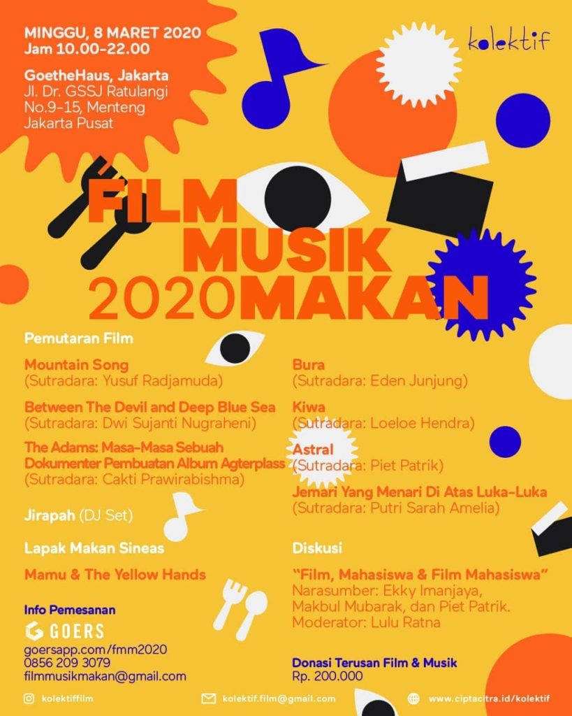 As the name suggests, enjoy film screenings, musical performances, as well as dining at the annual Film Musik Makan event. Numerous Indonesian indie short and feature films, such as Mountain Song by Palu-based filmmaker Yusuf Radjamuda, will be screened at the event. Aside from screenings, there will also be a discussion regarding student films.