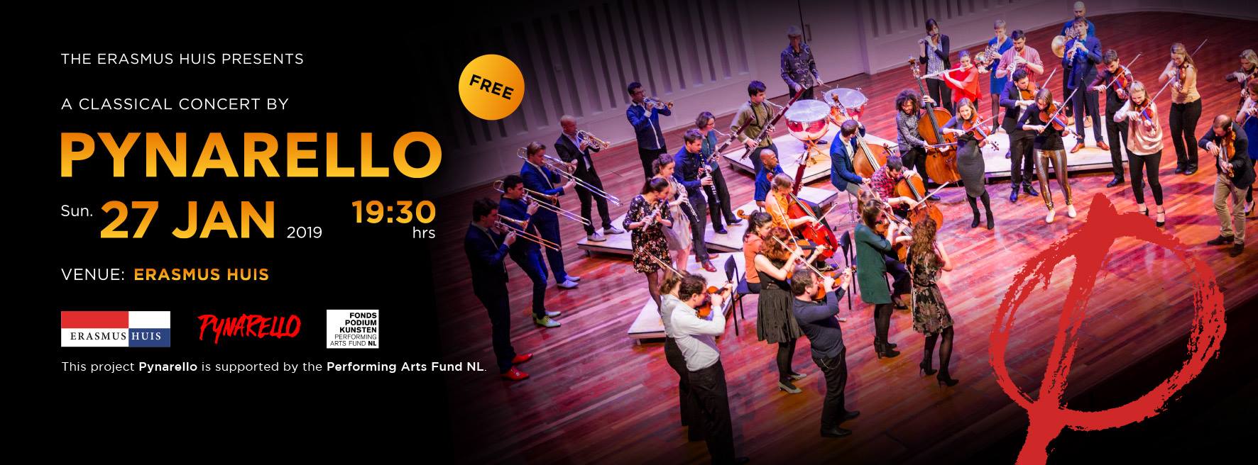 Dutch music collective Pynarello brings a fresh approach to classical music. Classical masterpieces are played without a conductor, mostly without sheet music and by a collective of top young musicians. They consider it not just a gimmick, but a radically different approach to music making, giving them much more flexibility and freedom while requiring intense communication between the musicians themselves as well as the audience. The performance is free and open to the public. For more info