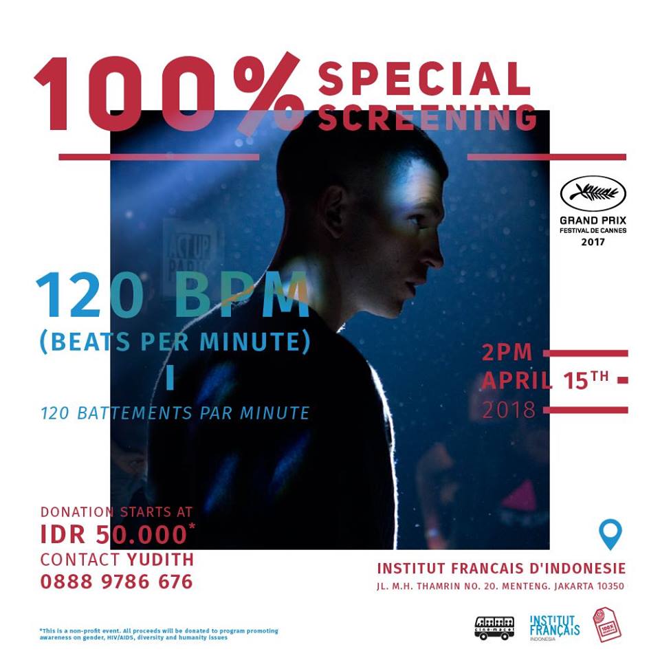 100 Persen Manusia (100% Human) puts on a film festival and regular special screenings about movies that tackle issues of gender, diversity and human rights. This Sunday at 2pm at Istitut Francais D’Indonesie, they’ll be holding a screening of 120 BPM (Beats Per Minute), a film about French HIV/AIDs activists in the 1990s that won the prestigious Grand Prix award at the Cannes Film Festival as well as the César Award (France’s equivalent of the Oscars) for best film in 2018. For more info