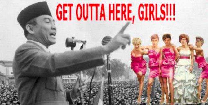 Meme showing first Indonesian President Soekarno’s disapproval of One Direction. Photo: Twitter/@kucangCZ