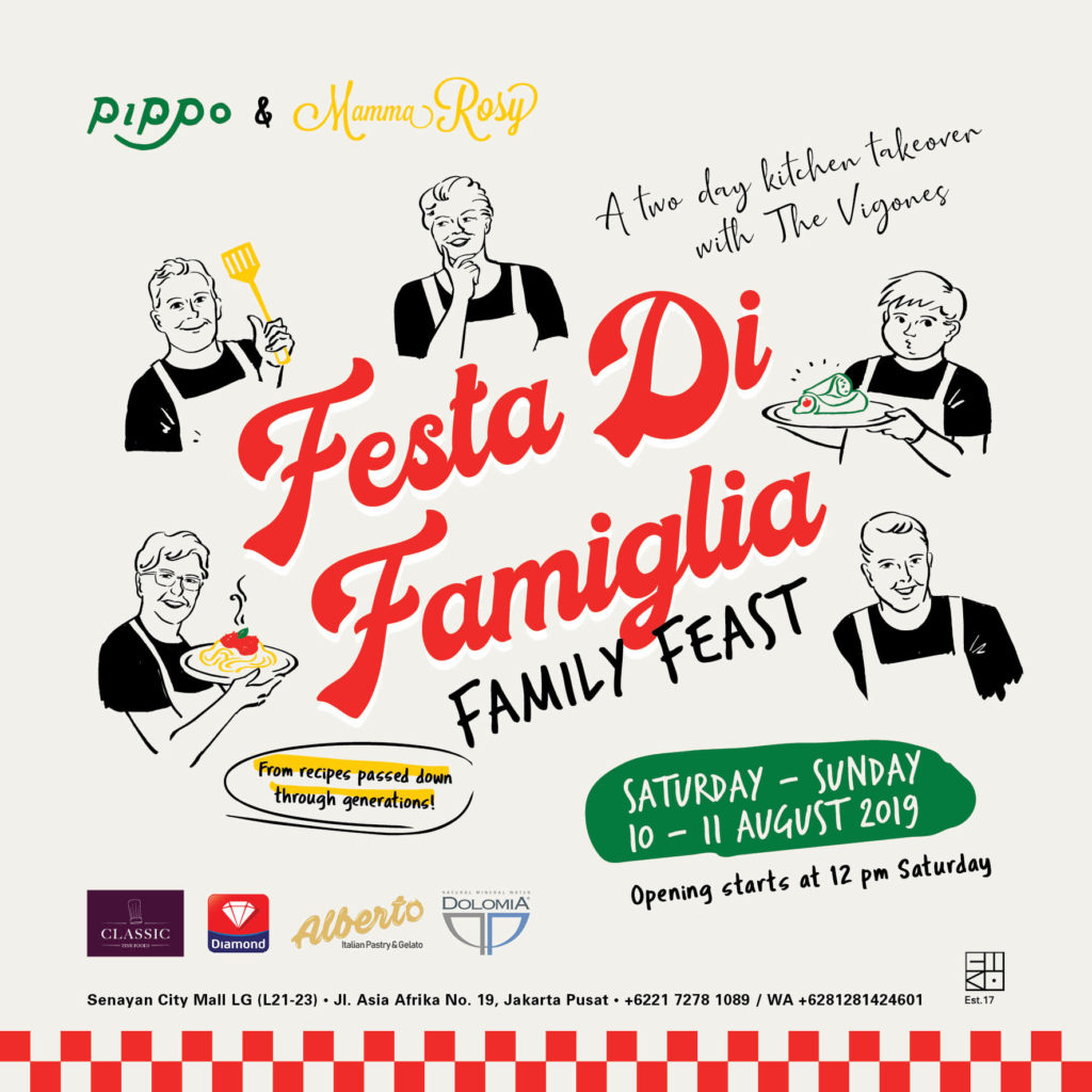 This weekend, savor true homemade Italian cuisine in Festa di Famiglia, a two-day kitchen takeover with the Vigones family of Kemang’s Mamma Rosy at Pippo. Dwell in the Vigones’ family recipes that have been passed down from generation to generation, such as La Panissa in Padella, Gli Gnocchi Rossi e Verdi, and Cannoli.