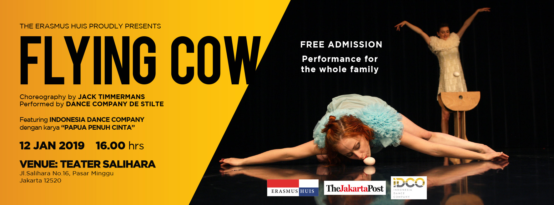 Dutch dance company De Stilte will perform “Flying Cow” in Jakarta on Saturday at 4pm at Teater Salihara. The show features choreography by Jack Timmermans that is aimed at children but suitable for the whole family. It tells a story about friendship and solidarity, about playing and the importance of the imagination. Admission is free. For more info