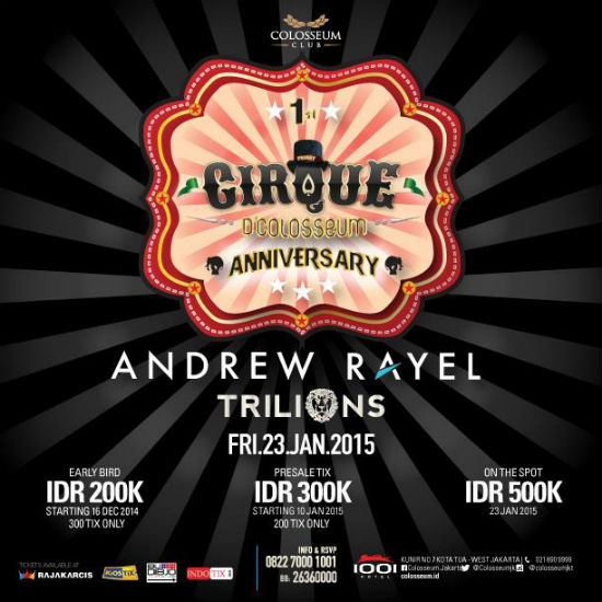 Starts at 10pm. Tickets Rp. 500k at the door. Colosseum, Jl. Kunir No 7. 0822-7000-1001