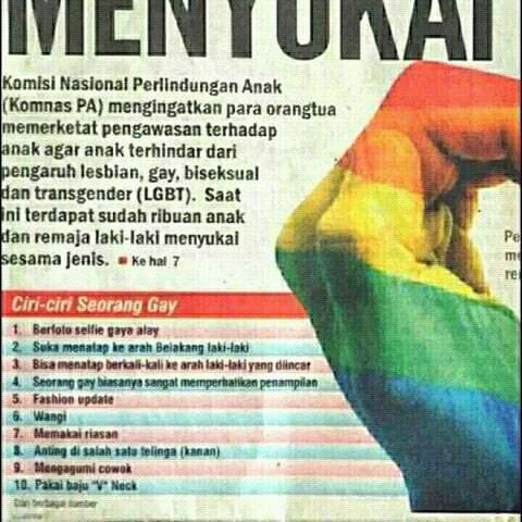 Correction: An earlier version of this story stated that these 10 points were based on observations from the National Commission for the Protection of Children (Komnas PA). The National Commission for the Protection of Children (Komnas PA) has contacted Coconuts Jakarta and denied they ever issued a set of guidelines to spot gay men in Indonesia. Komnas PA Commissioner Elizabeth Santosa said that the guidelines that appeared in the newspaper clipping were falsely attributed to the commission as she maintained that nobody in the commission ever made a statement about homosexual characteristics.
