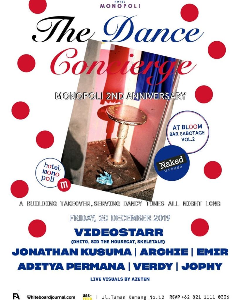 Hotel Monopoli, a boutique hotel in Kemang, will be celebrating their second anniversary this Friday. Under the theme of The Dance Concierge, join a night of partying with dancey tunes all night long from DJs such as throwback party specialists Videostarr, Jonathan Kusuma, and Archie, at the hotel’s bars and restaurant, namely The Moon, Bloom, and The Room.