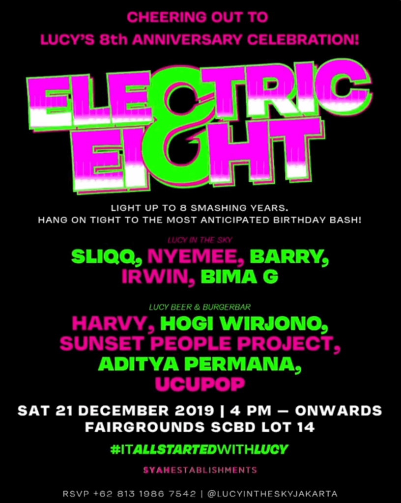 Saturday, Dec 21, at Lucy In The Sky, Fairgrounds SCBD Lot. 14 from 4pm onwards. RSVP to +62 813 1986 7542 or +62 812 9880 9363.