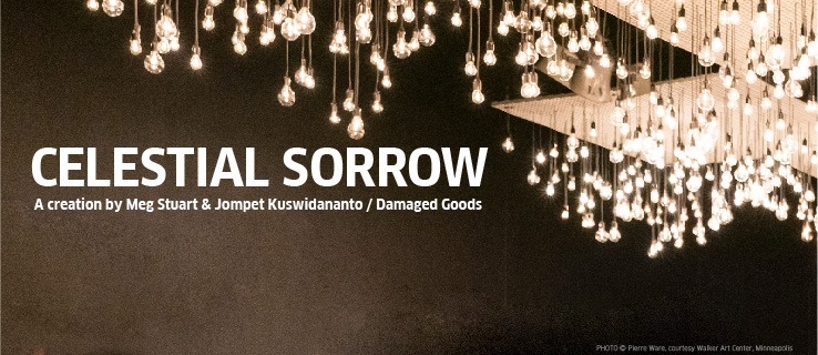 Celestial Sorrow was conceived during times spent together between American contemporary choreographer Meg Stuart and Indonesian visual artist Jompet Kuswidananto in Indonesia, premiered as part of Europalia Festival in Brussels in January 2018 and has been touring internationally since. Departing from possession and implanted fictional traumas, they create a vibrant world of light and movement, inhabited by three performers and two musicians. Together the group embarks on an exploratory journey, moving through imaginary and invisible spaces, and the voices that make them resonate.