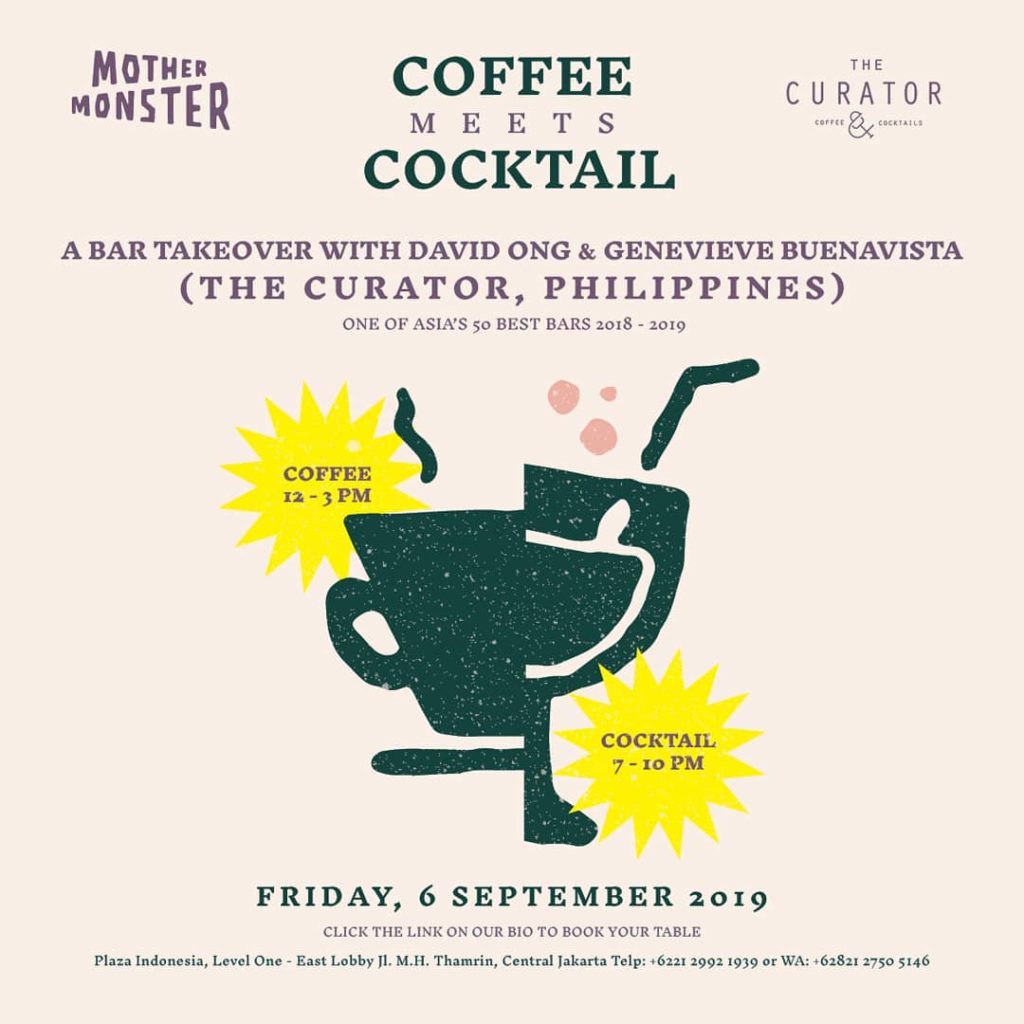 Friday, Sep 6 at Mother Monster, Plaza Indonesia. The coffee shift will be at 12 noon-3pm, followed by the cocktail shift at 7pm-10pm. RSVP to +62 821-2750-5146