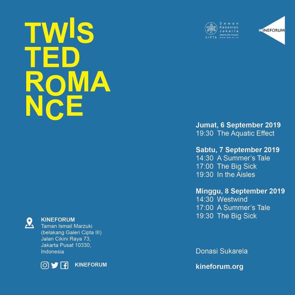 The love stories that you see on films don’t always go smoothly or have happy endings. Obstacles can come from anywhere, from within ourselves, family, tradition, living condition, and even political situations. The five films selected to be screened in Twisted Romance — A Summer’s Tale, In The Aisles, The Aquatic Effect, The Big Sick, and Westwind — present romantic stories that can be overwhelming, funny, or gut-wrenching, with their own twists. You can also share your opinion on how twisted the stories in the films are by filling the commentary cards that will be provided in the screening.